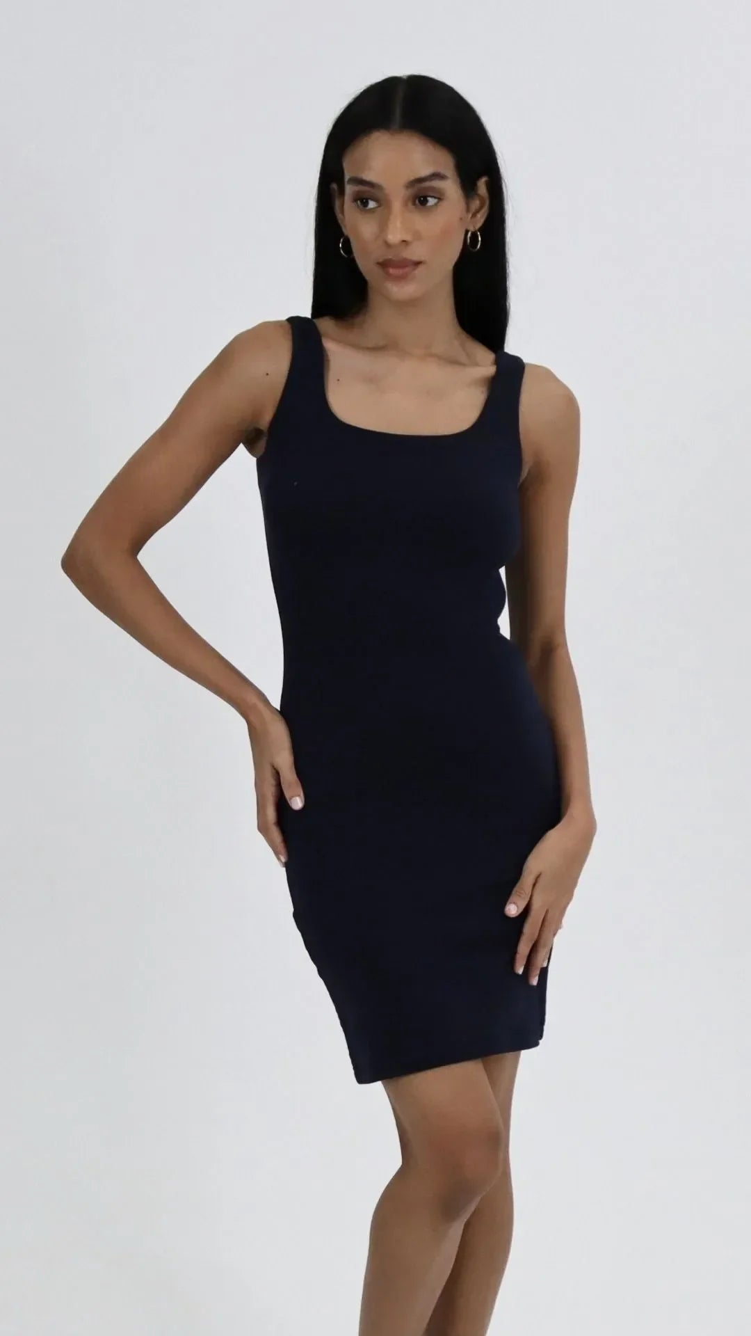 The Square Neck Midi Dress features a flattering, body-hugging silhouette and a discreet side zip for easy wear. Whether dressed up with heels or styled casually, the Square Neck Midi Dress is a trans-seasonal, sustainable investment.