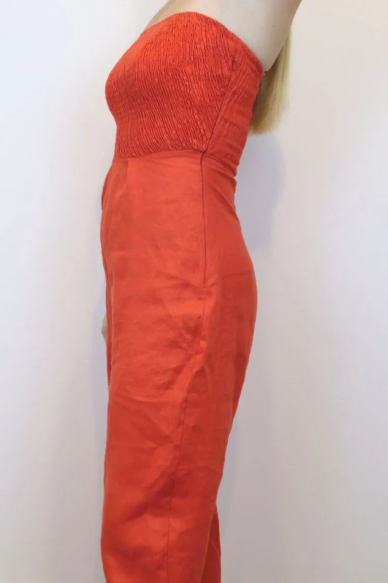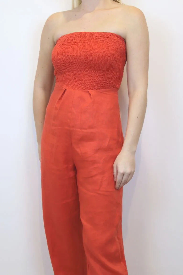 The Linen Strapless Jumpsuit in burnt orange is the ultimate summer statement piece, crafted from 100% premium linen.